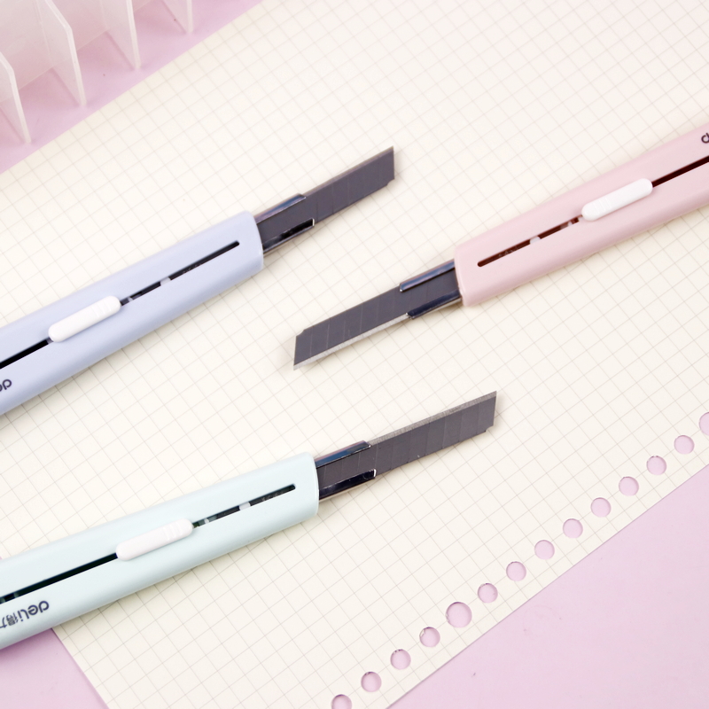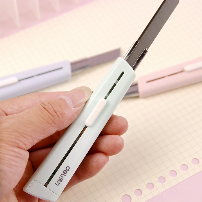 得力小号美工刀迷你随身拆快递小刀包裹开箱器卡通裁纸刀切割壁纸刀文具用品学生用小刀子长颈鹿款 手动削笔刀