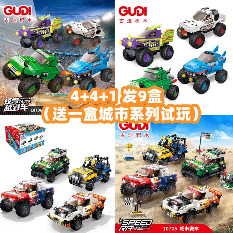GUDI古迪汽车积木拼装 城市赛车系列儿童益智男孩跑车玩具小颗粒