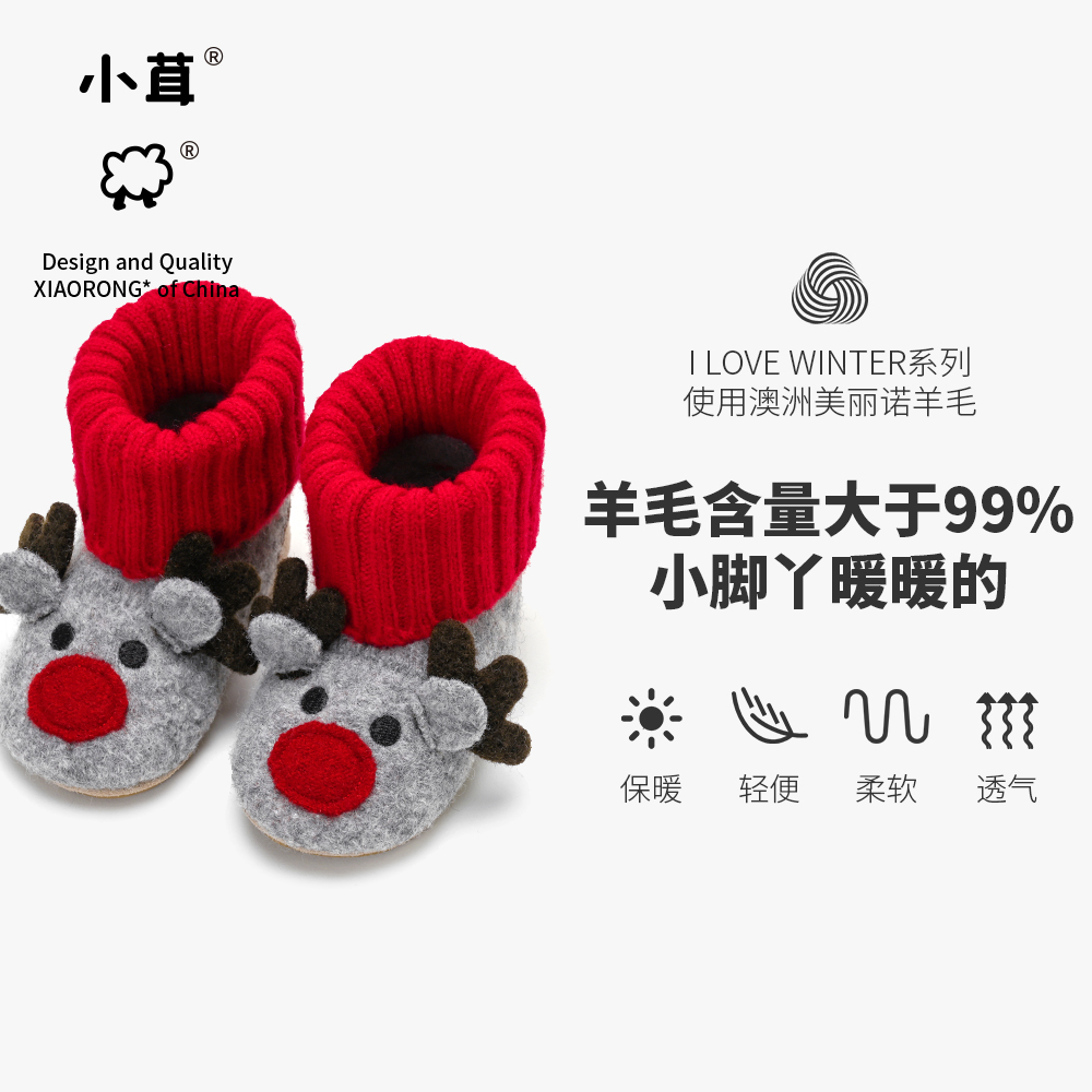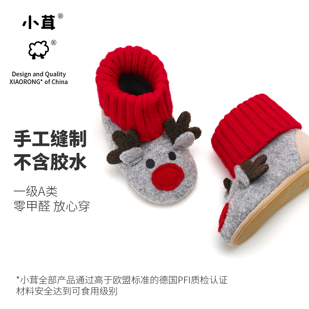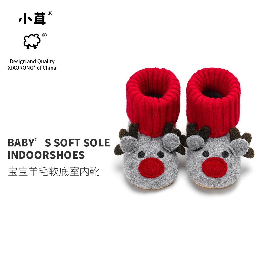 羊毛柔软圣诞麋鹿室内靴软底防滑地板鞋 小茸宝宝室内鞋 小童学步鞋