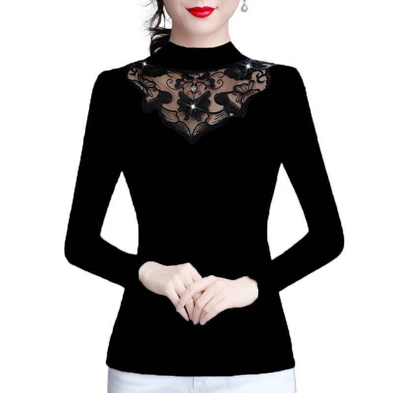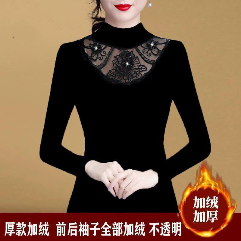 长袖 蕾丝打底衫 加绒洋气小衫 年新款 加厚保暖内搭 初秋女上衣短袖
