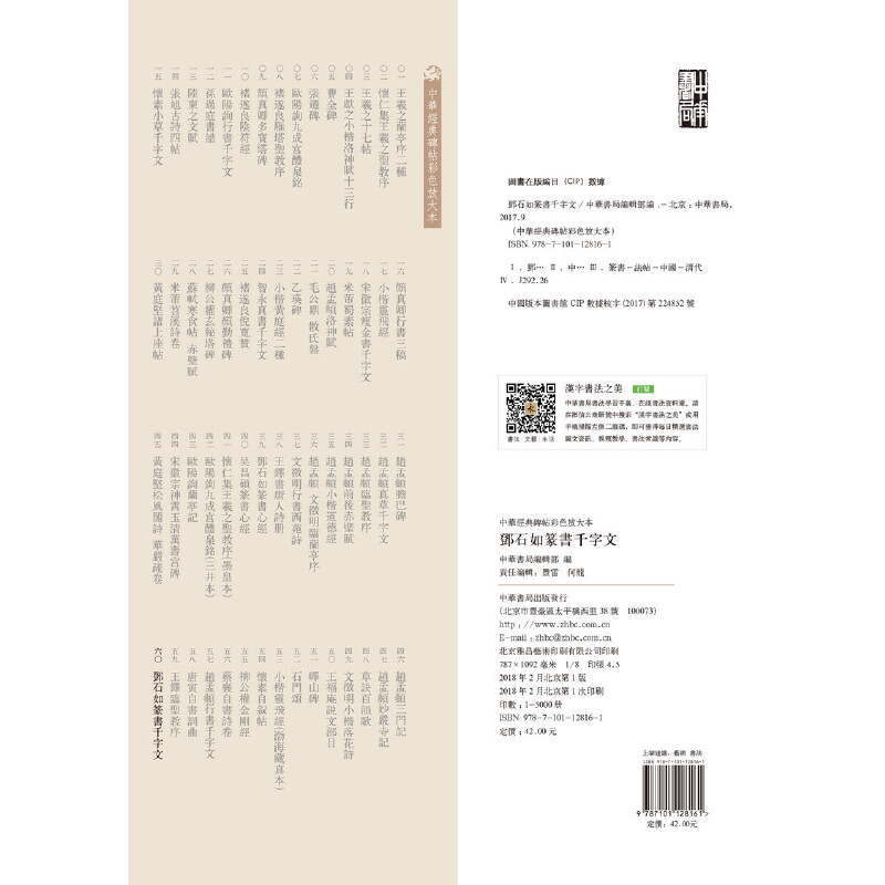 碑帖彩色放大本 中华书局编辑部编 中华书局出版 正版 邓石如篆书千字文中华经典 雅昌艺术精印超大八开四 书籍 当当网