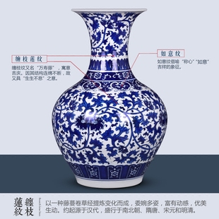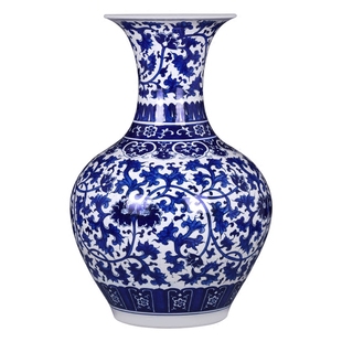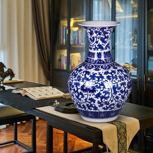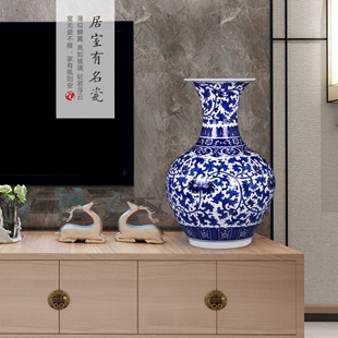 景德镇陶瓷器仿古青花瓷花瓶大号落地中式 饰品摆件 家居客厅插花装