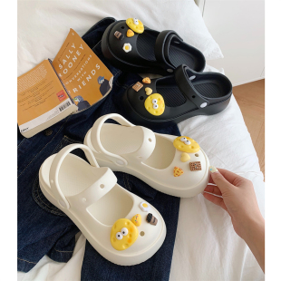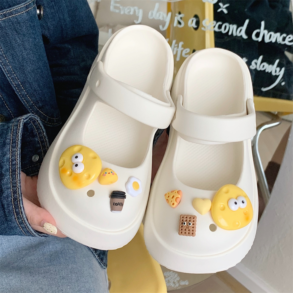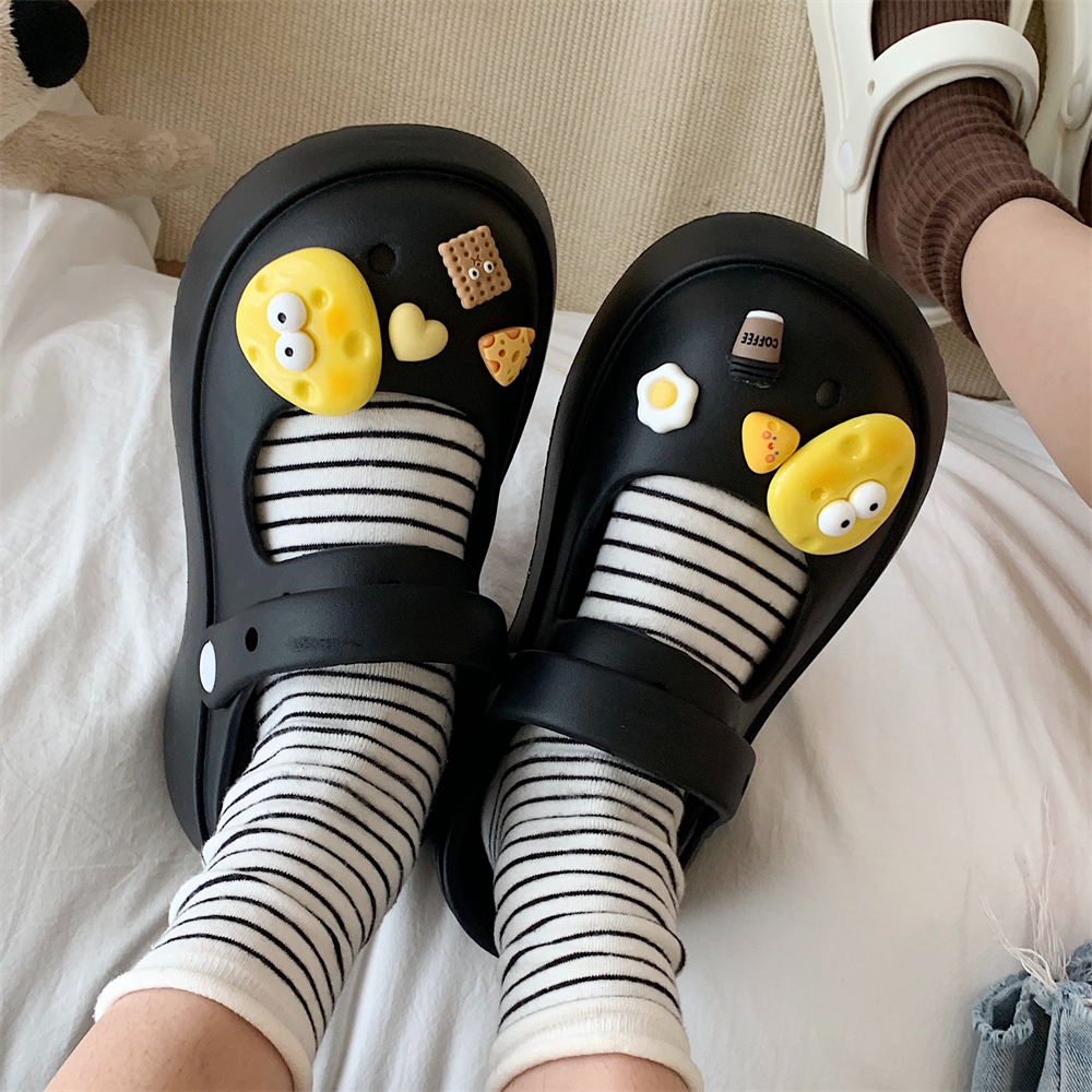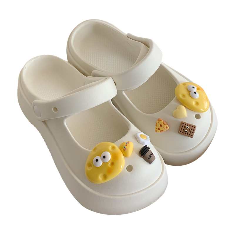 女士 度假户外卡通包头凉鞋 趣味奶酪防滑增高厚底玛丽珍半拖鞋 夏季