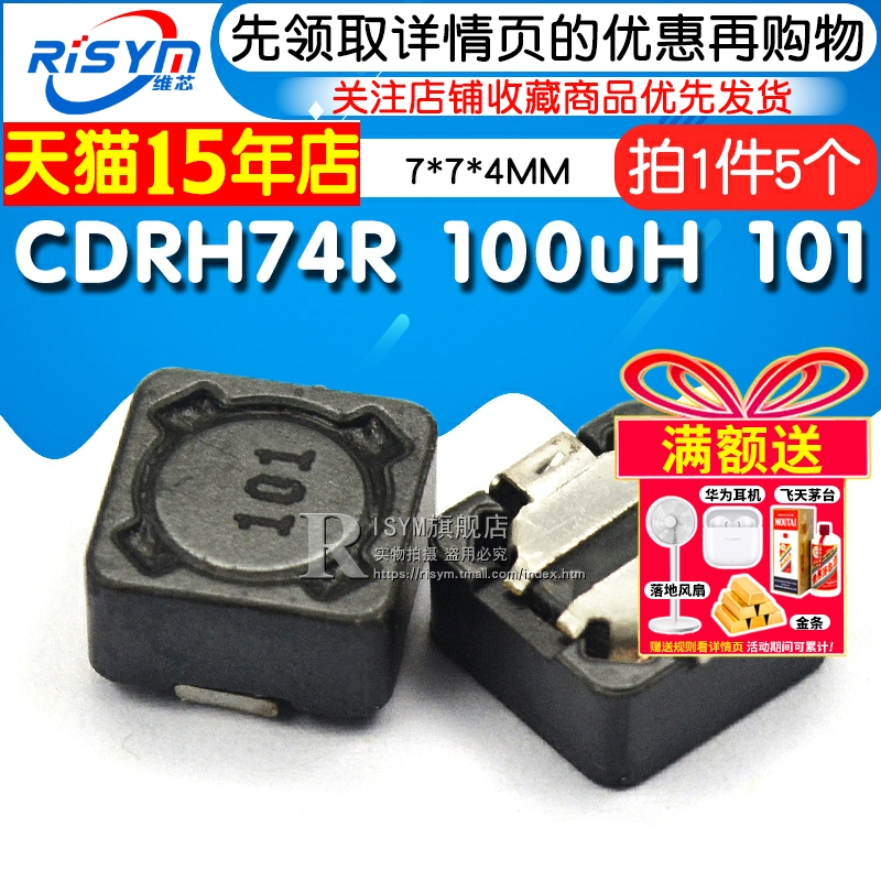 100uH 101 电感器 CDRH74R 贴片功率电感 4MM 屏蔽电感 5个