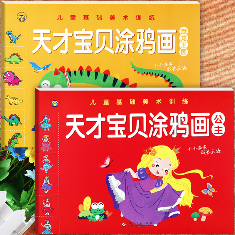 公主涂色天才宝贝涂鸦画一二三笔画恐龙画画书新蒙氏幼儿学画画书入门零基础幼儿绘画启蒙宝宝学画画幼儿美术益智创意涂色绘画本