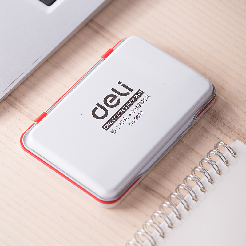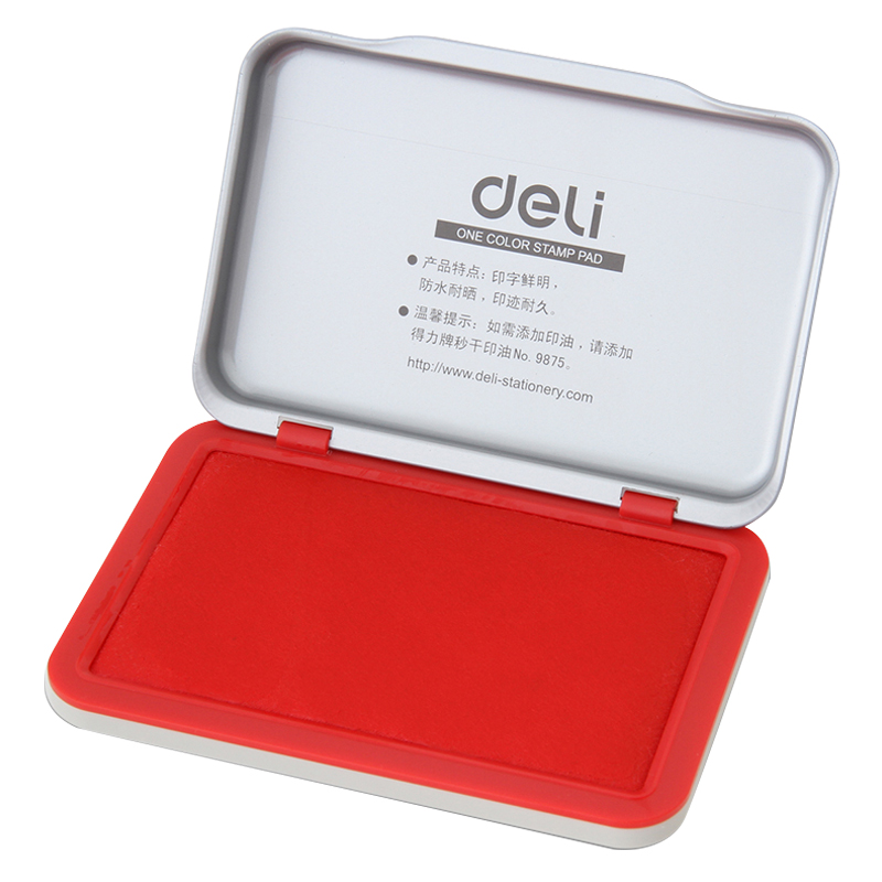 印泥盖章台办公财务用品金属外壳红色大中小印章按手印指纹办公用品 秒干 得力红色印台9891 水性