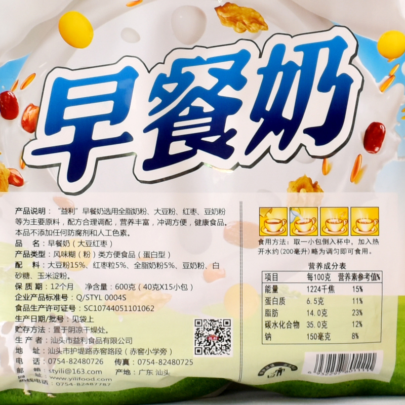 益利 大豆红枣早餐奶免煮即食代餐粉600g营养早餐食品营养冲饮品