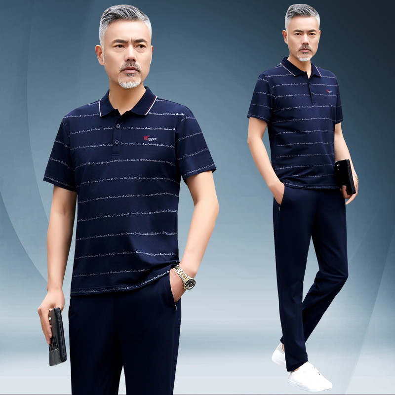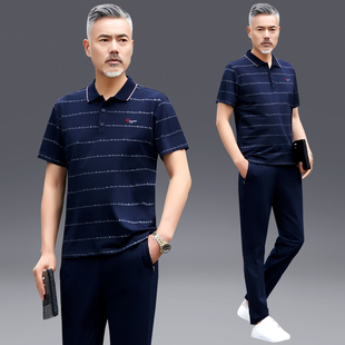t恤长裤 中老年人运动套装 短袖 新款 宽松爸爸休闲运动服 男2025夏季