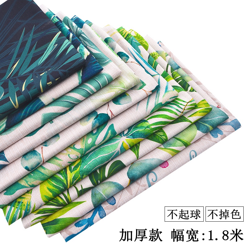 沙发布料面料棉麻亚麻绿植物印花北欧小清新diy桌布背景窗帘布料