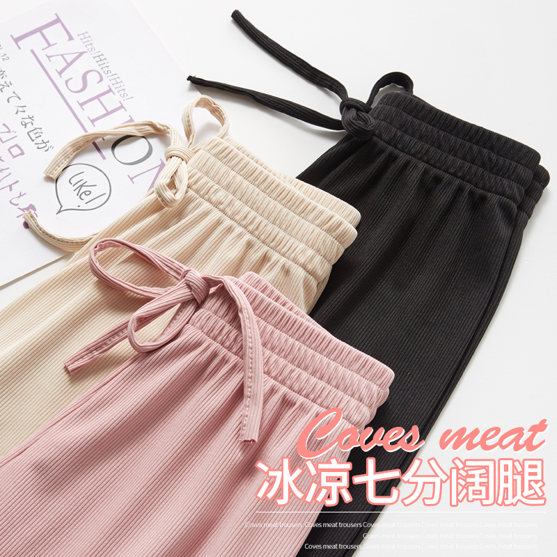 高腰垂感宽松直筒休闲裤 冰丝阔腿裤 大码 小个子2024新款 子 女夏薄款