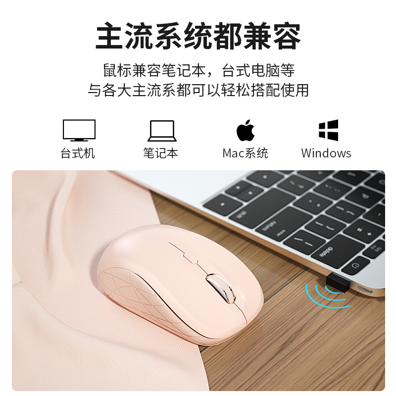 BOW航世笔记本无线鼠标外接USB电脑无声静音办公家用可爱女生便携