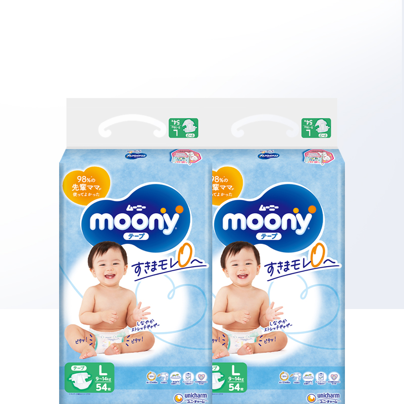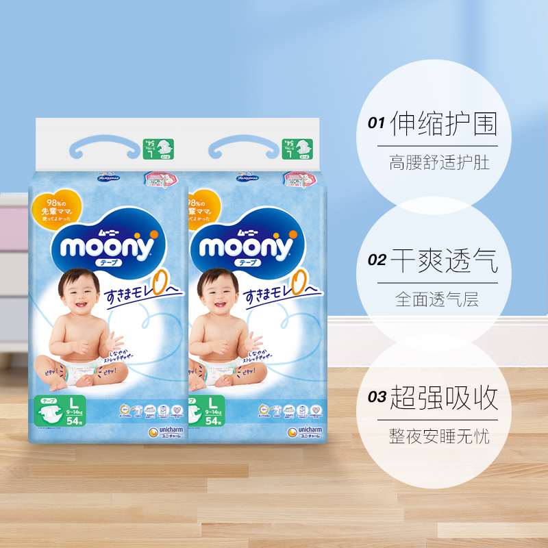 L54片 moony腰贴型婴儿纸尿裤 2尿不湿超薄透气宝宝尿片 自营