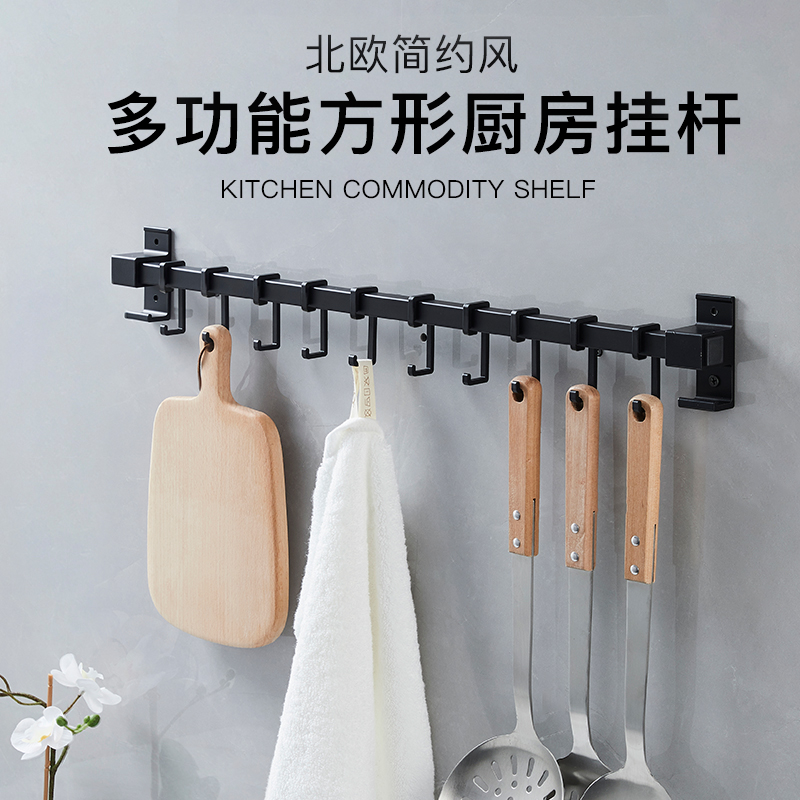 厨房挂钩架免打孔挂架勺子铲子排钩挂杆壁挂免钉置物架横杆多功能