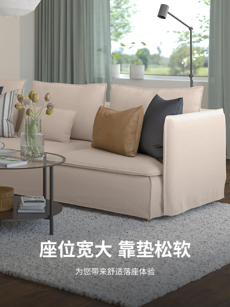 奶油风布艺沙发客厅2025新款 小户型家用可拆洗三人位直排云朵沙发