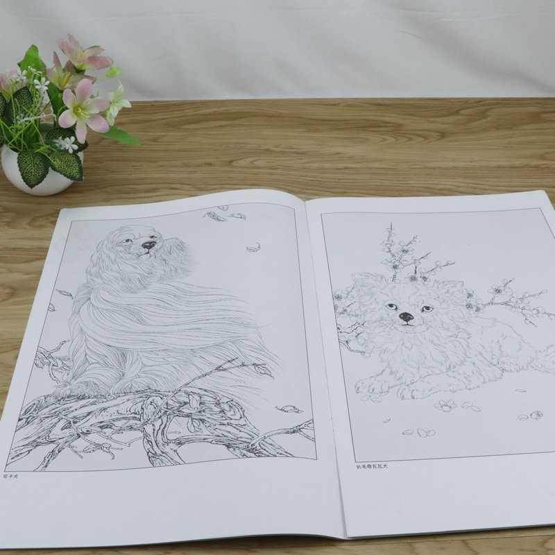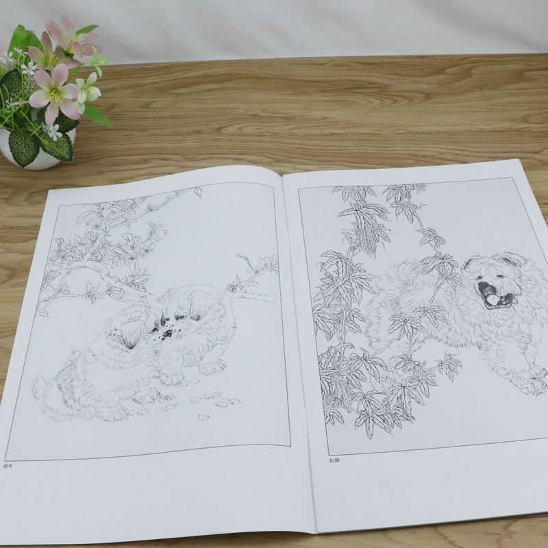 名犬白描画稿 包邮 美术教学示范作品动物工笔白描技法从入门到精通百虎百兽画谱临摹绘画入门图册书籍 有划道介者慎拍5本38