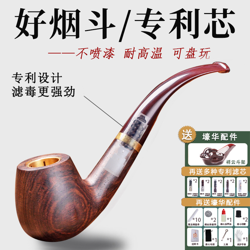合旺实木烟斗三用男士 烟草专用烟袋铜锅 手工过滤烟丝斗石楠木老式