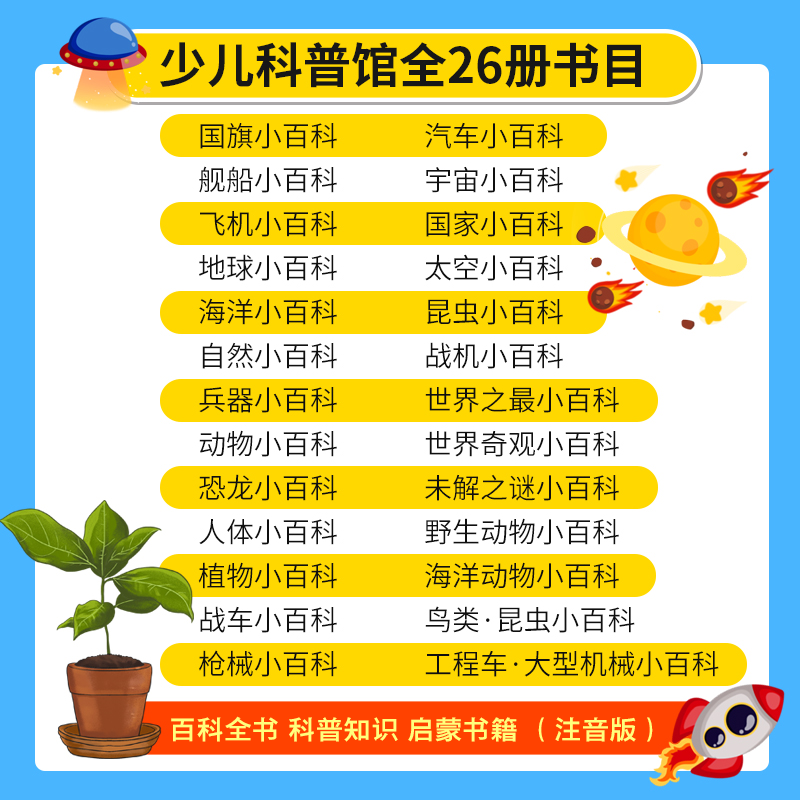 科普知识 动植物太空宇宙人体自然飞机汽车昆虫恐龙百科全书 启蒙书籍畅销书 少儿科普馆全套26册注音版 儿童科普书籍百科大全