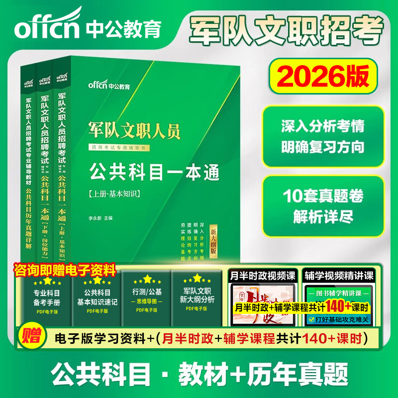 新大纲中公军队文职人员招聘考试用书2026部队文职招考教材真题题库公共科目专业课管理学护理会计学数学一123 化学物理技能岗资料