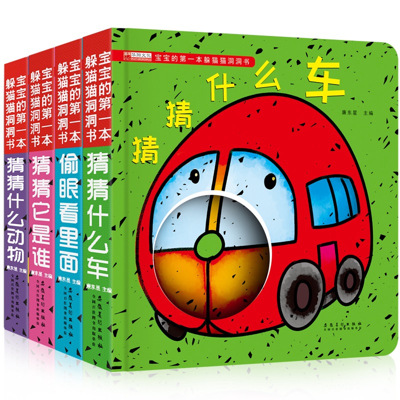 第一本躲猫猫洞洞书 3岁宝宝启蒙认知识图认物撕不烂彩色卡片儿童图书绘本 共4册 幼儿宝宝学说话游戏书 幼儿早教书籍 宝宝