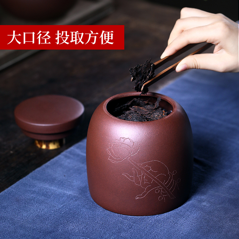 宜兴紫砂茶叶罐家用存储罐茶仓密封罐普洱大小号紫泥手工罐八两装