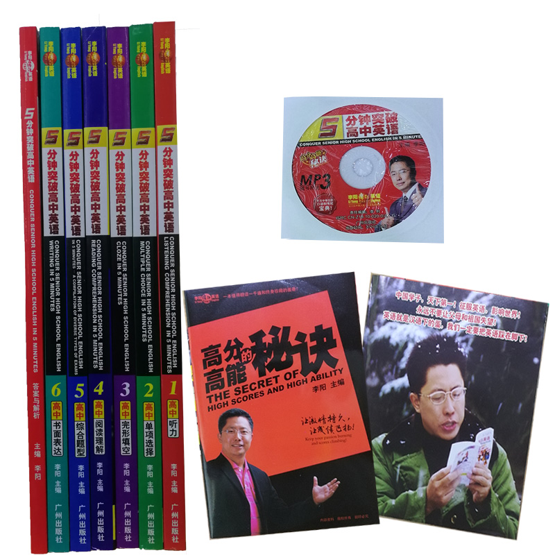 赠送答案与解析 高分高能秘诀书 单选 套装 疯狂英语 疯狂英语高中英语听力阅读 全6册 1张光盘 新李阳5分钟突破高中英语 海报1张