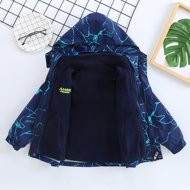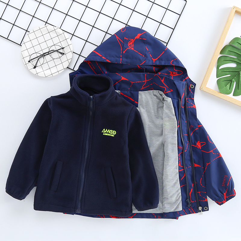 可拆卸加绒加厚儿童冲锋衣三合一 洋气春秋款 男童秋装 外套2021新款