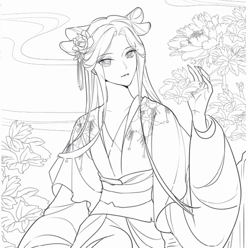 填色书成人手绘 减压秘密花园涂色书 包邮 唯美涂色线描集古风人物 正版 水彩古风涂色线描 涂色书籍 古风人物绘 思美人醉花颜