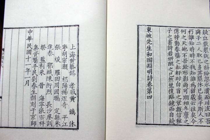 雕版 木板刷印 1195-1200 宣纸线装 黄州刊本 间 全一函二册 1922年张宗祥翻刻宋庆元 东坡先生和陶渊明诗 中国书店