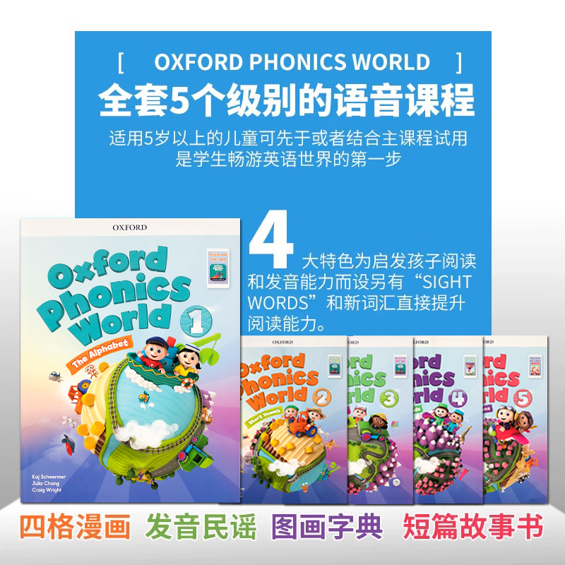 Phonics 牛津Oxford world 5级别 小学英语儿童启蒙教材 进口原版 字母组合自然拼读Phonics字母发音系列 新版