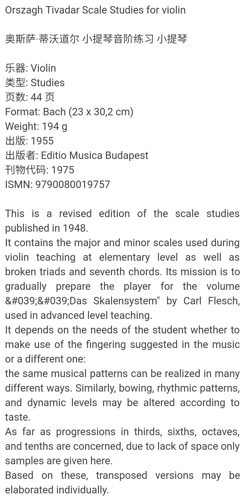 for Z1975 布达佩斯原版 Tivadar Scale Orszagh 拓展修订版 进口乐谱书 violin 蒂沃道尔 Studies 小提琴音阶练习