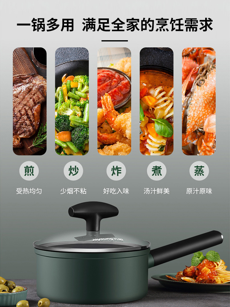 九阳奶锅不粘锅家用泡面锅宝宝婴儿辅食锅煎煮一体热牛奶汤锅炊