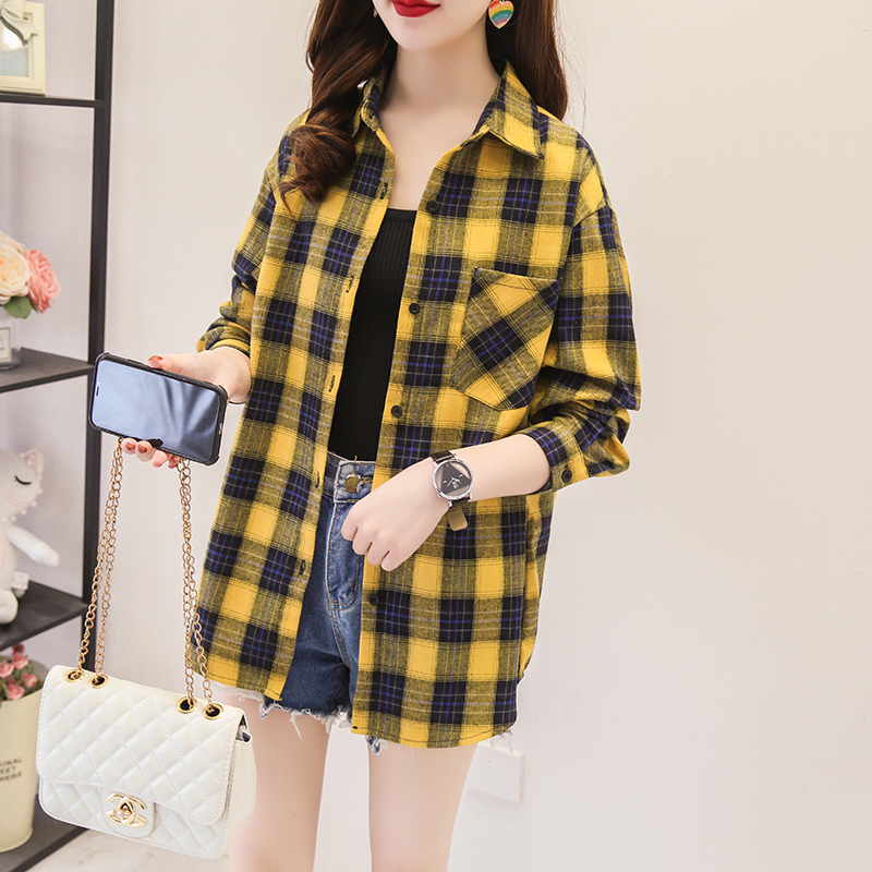 休闲宽松版 热风女士格子长袖 新款 2025年秋季 型衬衣轻薄外套 衬衫