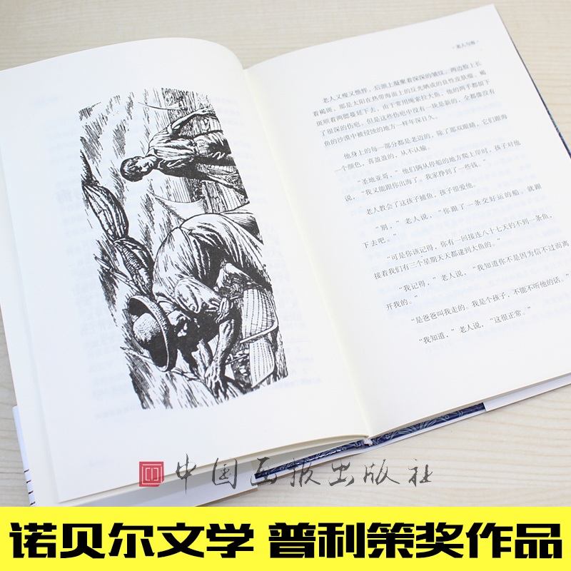 精装 社官方正版 插图 海明威小说世界儿童文学名著书籍中国画报出版 图书 老人与海原著正版
