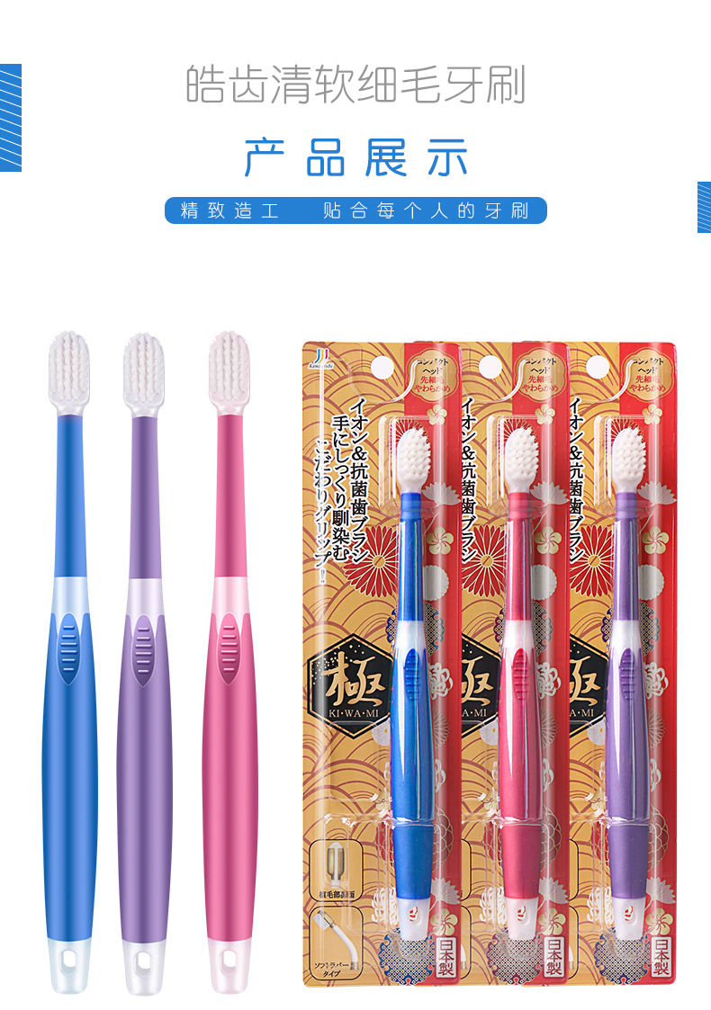 皓齿清日本进口细毛软毛成人牙刷家用牙齿清洁工具负离子口腔护齿