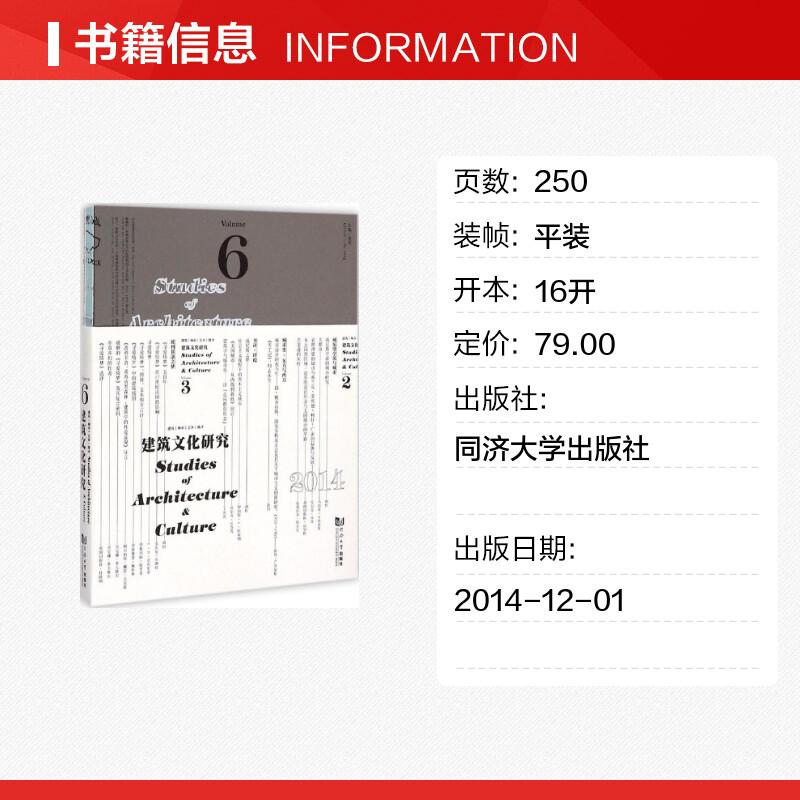 图书籍 社 著 新 专业科技 水利 编 建筑 同济大学出版 建筑文化研究第6辑 新华书店正版 胡恒