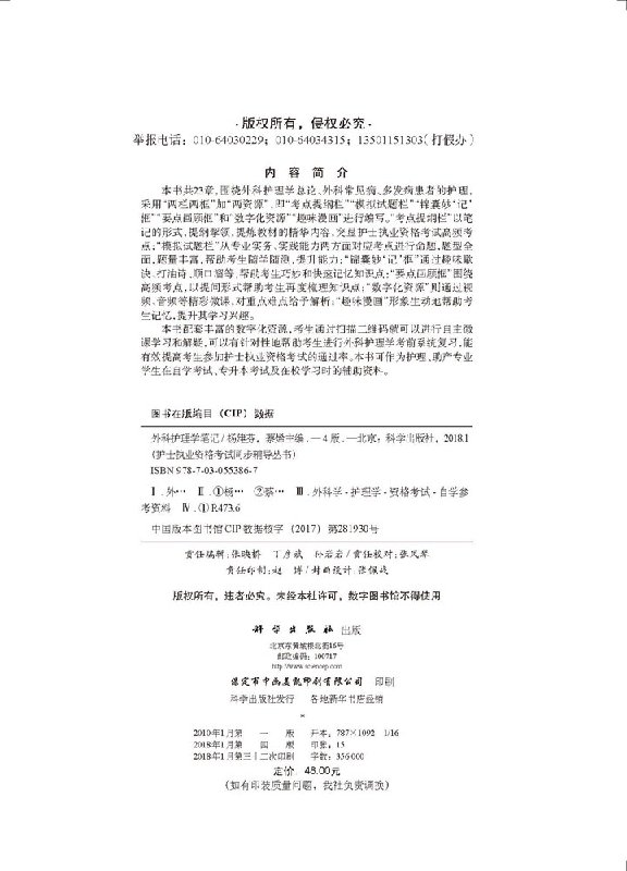 蔡烯 杨建芬 编 9787030553867 社护士执业资格考试同步辅导丛书 外科护理学笔记 科学出版 第四版