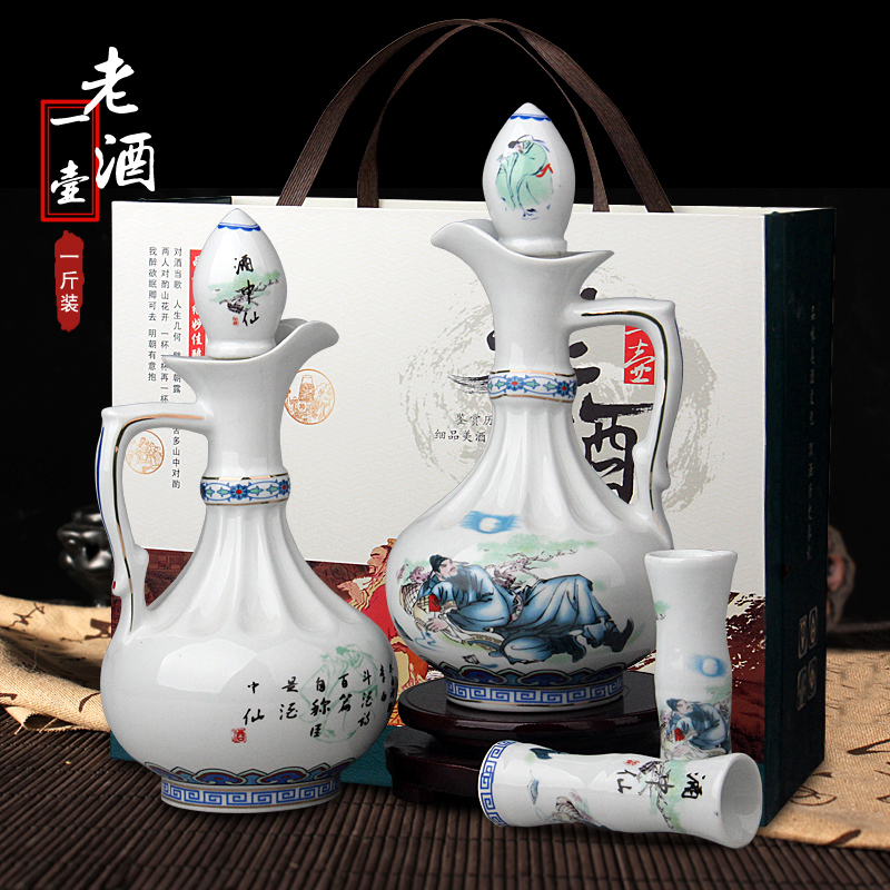 陶瓷酒瓶酒坛子1斤装 密封景德镇白酒空酒瓶摆件酒壶家用 酒瓶套装