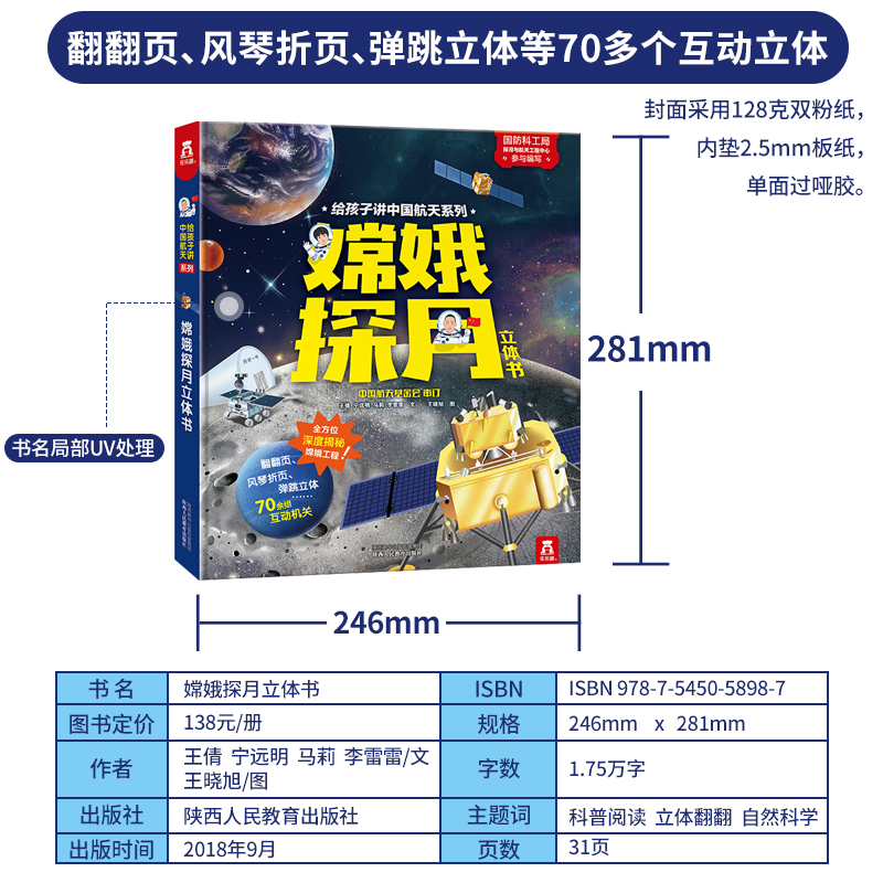 给孩子讲中国航天系列 嫦娥探月立体书 6岁儿童科普翻翻书3D立体书早教百科畅销书认知太空趣味科学绘本精装 正版
