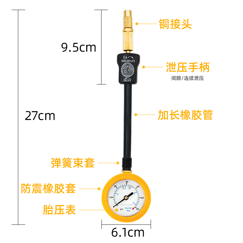 胎压表气压表高精度带压力充气头汽车轮胎压监测器计加气枪打气嘴