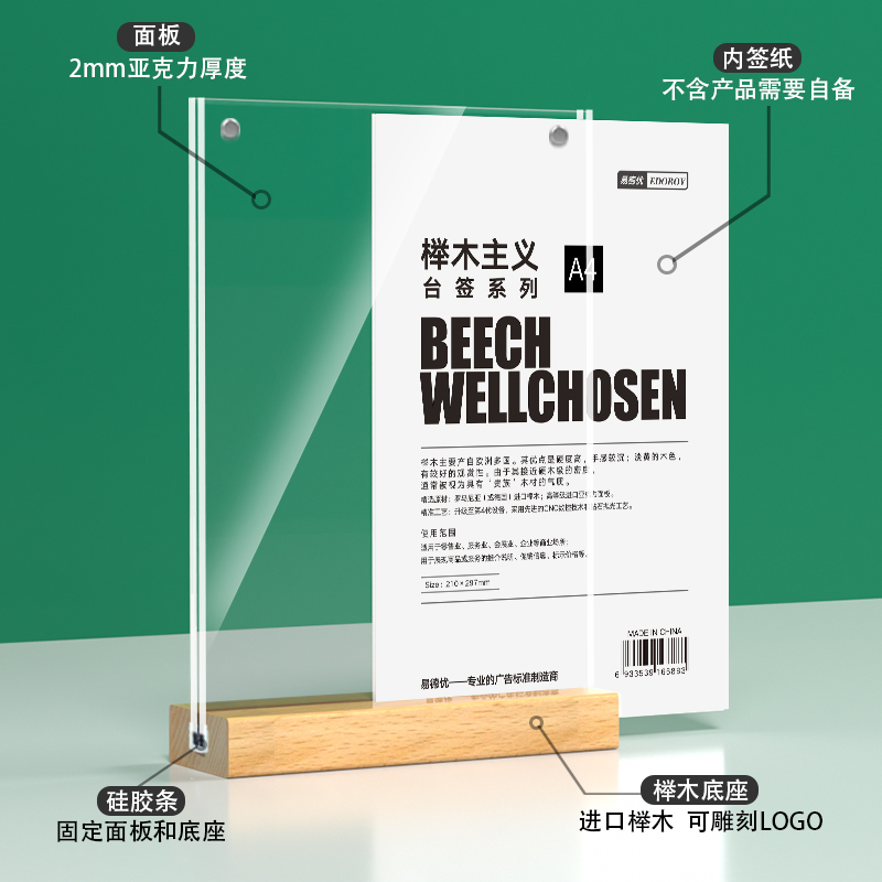 A4亚克力展示架桌牌台卡架价目牌双面原木木质台牌广告牌奶茶店菜单l型台牌台签桌面立牌价格展示牌