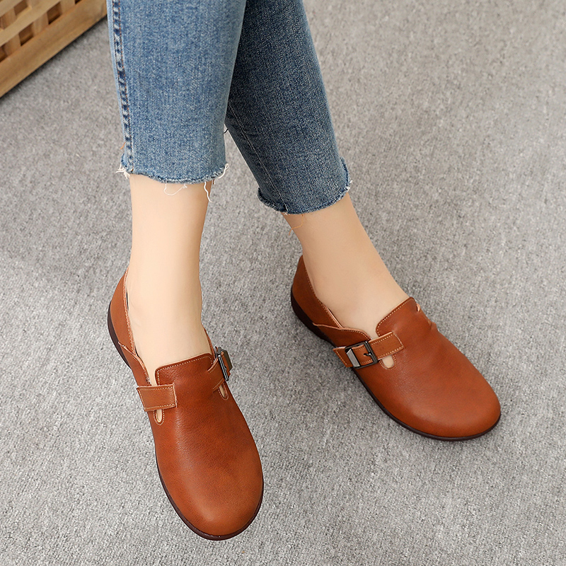 春秋女鞋 牛筋软底软皮真皮鞋 开车平底鞋 四季 子 女休闲单鞋 2025新款