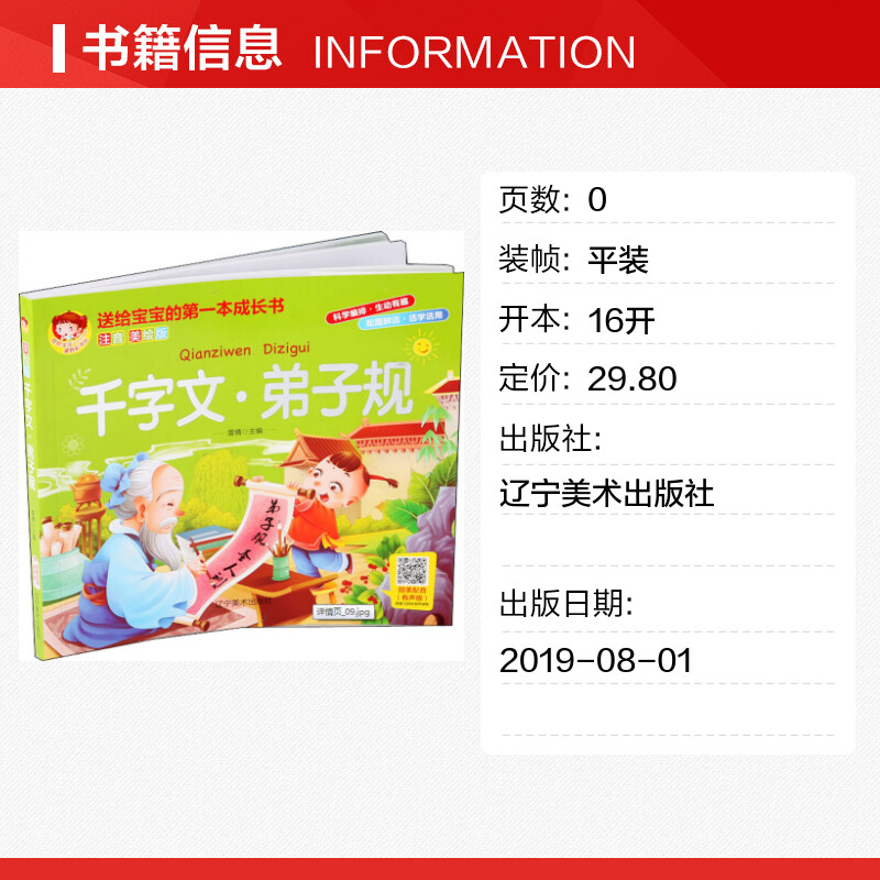 少儿动漫书少儿 社 雷倩 辽宁美术出版 图书籍 新华书店正版 图画书 绘本 编 注音美绘版 千字文·弟子规