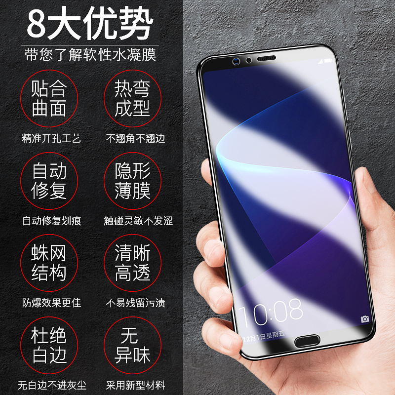 适用于荣耀v10水凝膜华为荣耀10钢化膜全屏v9手机全屏覆盖无白边曲面荣耀10青春版 抗蓝光honor10保护软贴膜