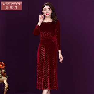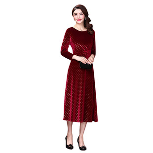 裙子1062 收腰显瘦气质精致加厚长袖 安可拉红连衣裙洋气秋冬季 新款