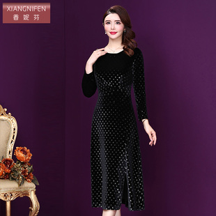 歌莉娅丝绒连衣裙女秋季 裙子 穿搭高级感重要场合大方得体端庄长袖