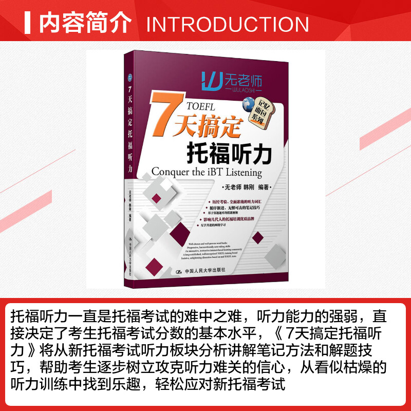 著 托福 中国人民大学出版 无老师 社 图书籍 韩刚 新华书店正版 7天搞定托福听力 TOEFL文教