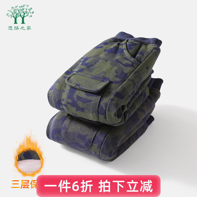 裤 夹棉迷彩男童秋冬小童冬装 子 一两岁儿童冬季 男宝宝加绒加厚棉裤