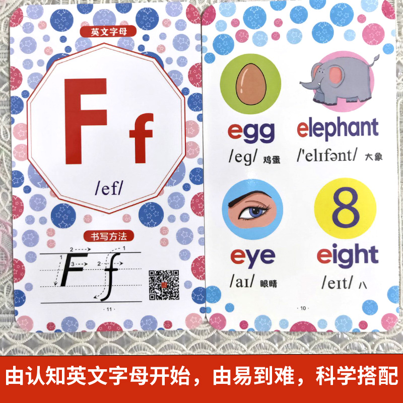 英文字母学习卡 儿童26个英文字母单词认读英语口语练习学习英标彩图说英语汉语翻译综合小学生英语基础学习 小博士早教卡片有声