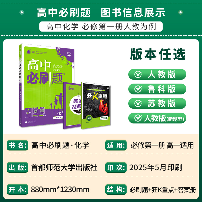 化学必刷题高一高二RJ化学选择性必修一二三上下册同步练习册复习资料选修一 高中必刷题化学必修第一册第二册人教版 2025 26新版
