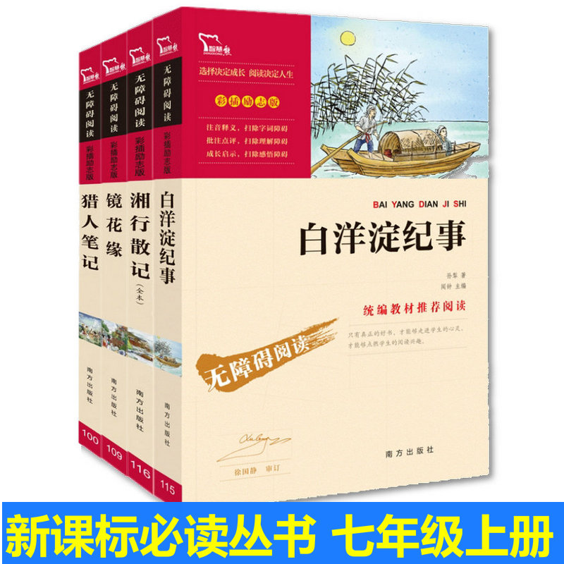 智慧熊 全4册猎人笔记 白洋淀纪事 湘行散记 商务印书馆人教统编教材七年级上中小学新课标课外阅读名著书籍彩插无障碍阅读 镜花缘
